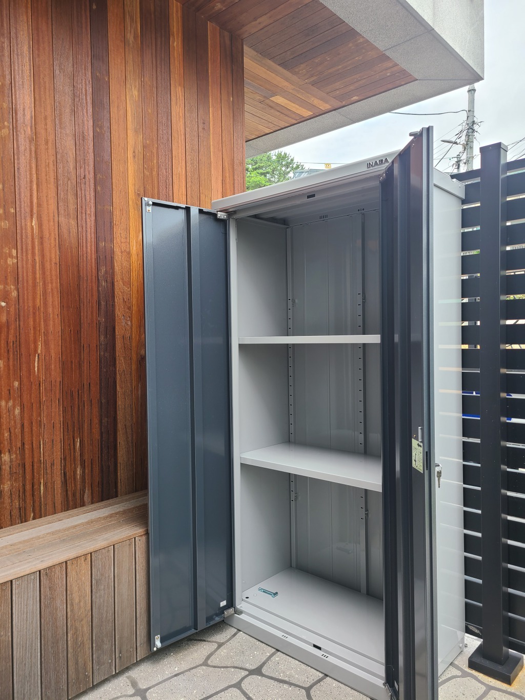 부산 기장 물품보관용 조립식창고 BJX-095E 900* 515* 1903* ( 0.14평 ) 크기이며, 차콜그레이 ( CG ) 색상의 문 입니다.