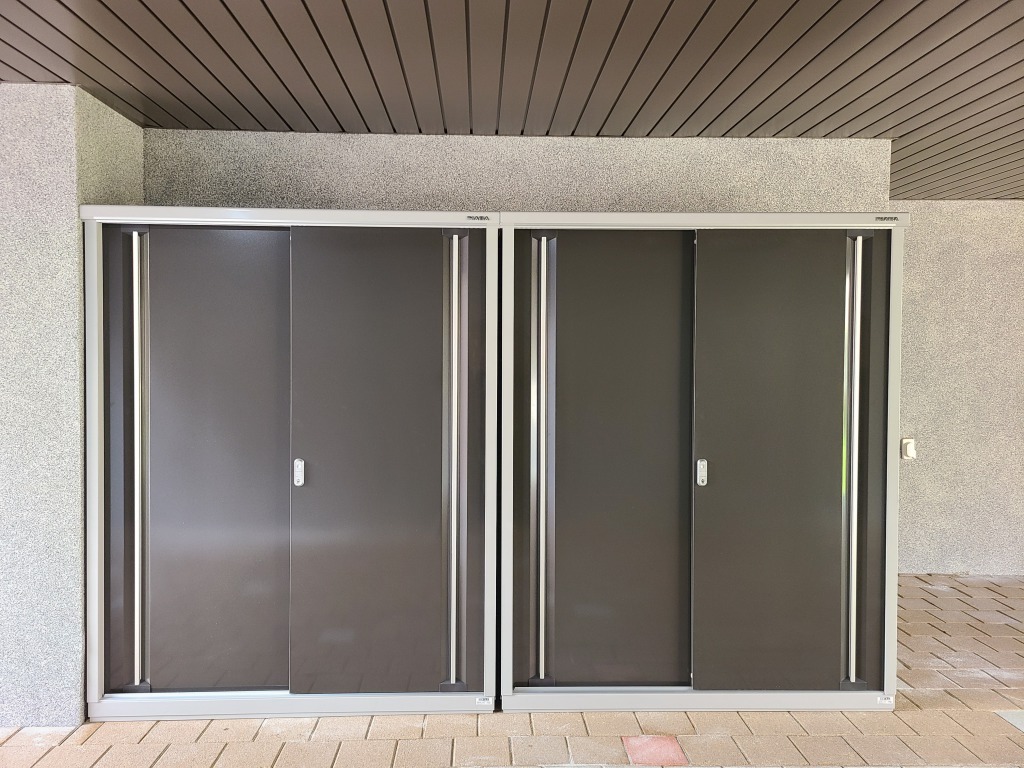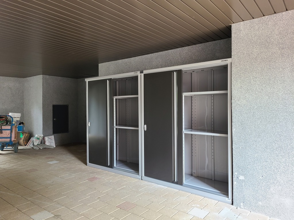인천 타운하우스에 설치된 소형 미닫이형 창고이며, 2동 설치했어요~!