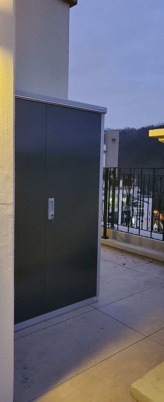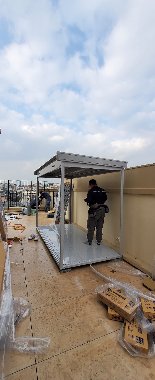 서울에 위치한 팬트하우스 옥상 물품보관용 조립식 창고이며,